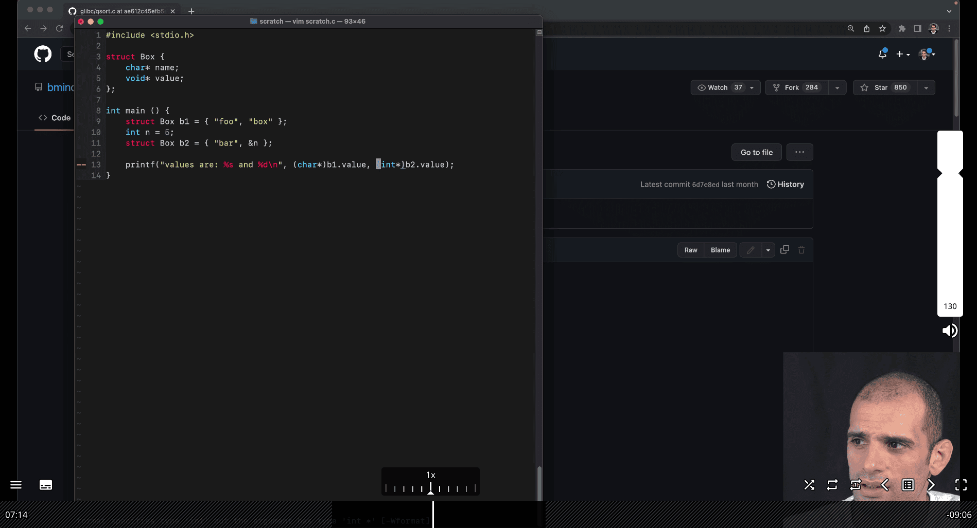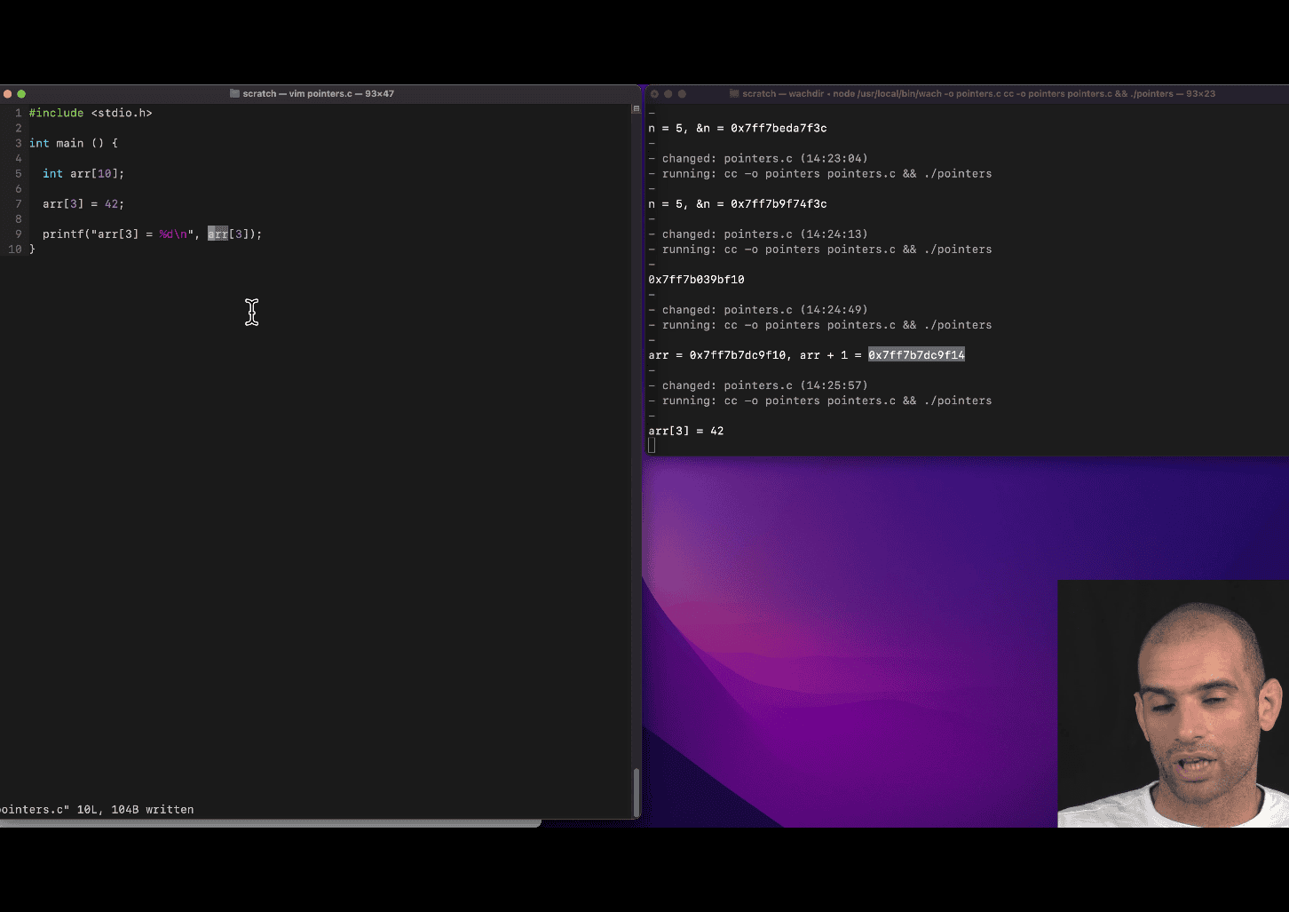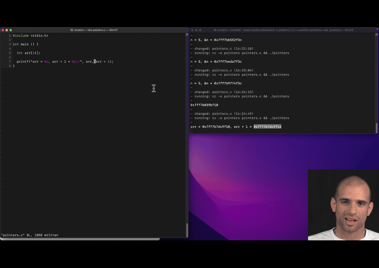 *(int*)(da->arr[0]) = 42; // store value through pointerThis version lets each element be its own pointer (could point to strings, structs, etc.)