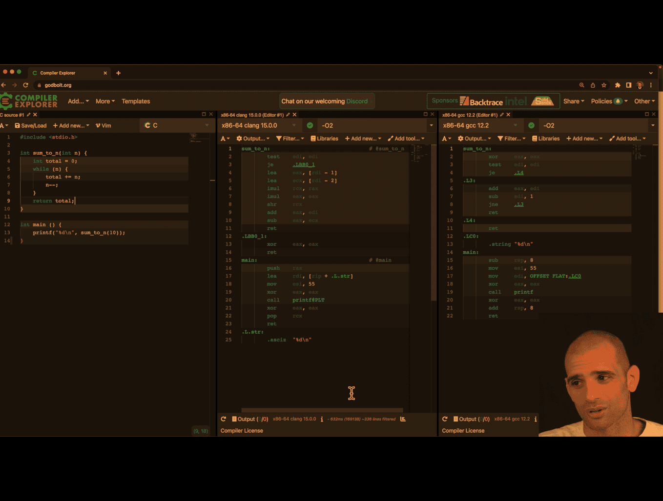 * lower values of n. Also, you may want to compile at -O1 to avoid redundant